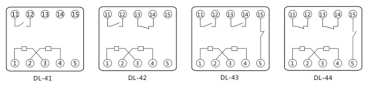 DL-41導軌式電流繼電器內(nèi)部端子外引接線圖(正視)