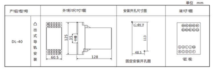 DL-41導軌式電流繼電器外觀尺寸
