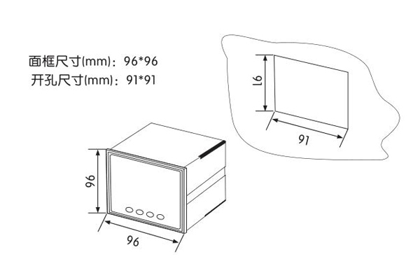 4、單相智能數(shù)顯直流電壓表SJ195U-9K1產(chǎn)品尺寸