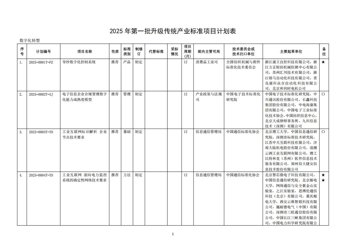 工業(yè)和信息化部辦公廳關(guān)于印發(fā)2025年第一批行業(yè)標(biāo)準(zhǔn)制修訂計劃的通知