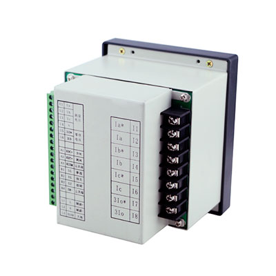 11-18端子為電流端子,其中I1-16端了為保護電流輸入端子,當保護采用兩相式保護時,13、14懸空。17、 18端予為零序電流輸入端子,帶*號為同名端,接線時請注意。