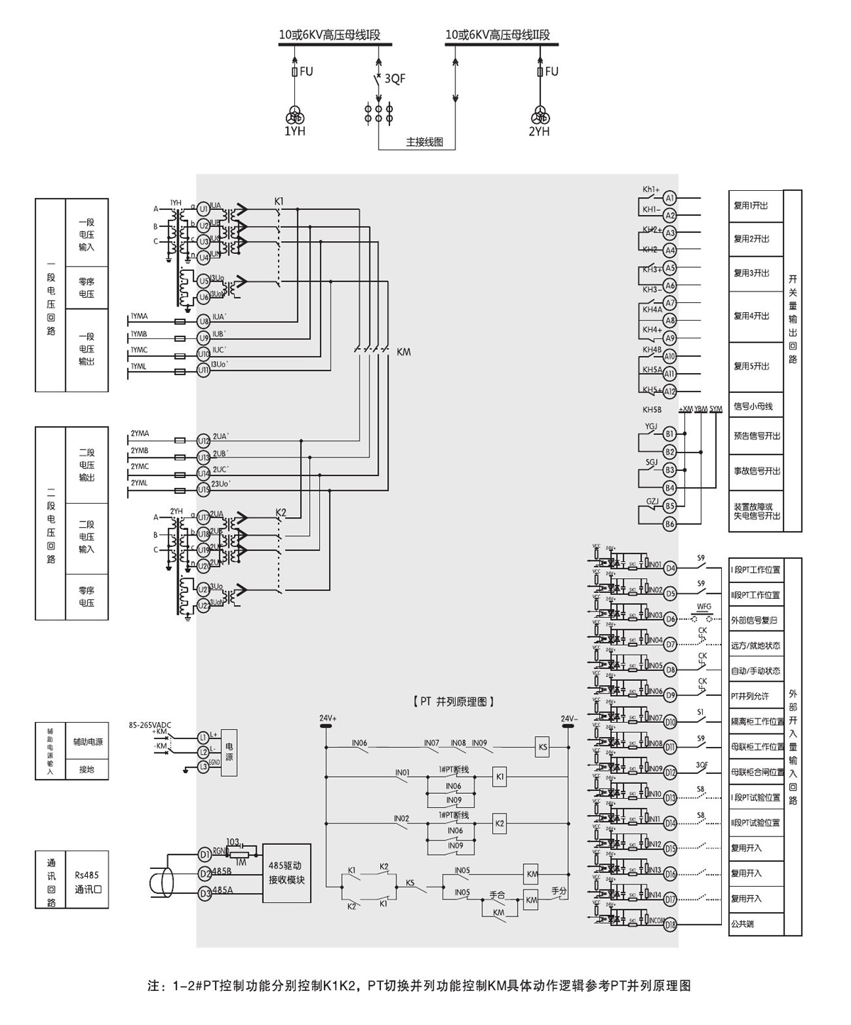 ■集保護、測量、監(jiān)視、控制、人機接口、通信等多種功能于一-體; 專門針對開關(guān)柜進行“單元化”設(shè)計,一 臺裝置即可完成開關(guān)柜內(nèi)電壓互感器的自動化功能,簡化了開關(guān)柜次設(shè)計和施工,代替了各種常規(guī)繼電器和測量儀表,節(jié)省了大量的安裝空間和控制電纜。